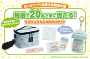 すみっコぐらしオリジナルマルチケースに同梱されている応募シリアルコードを、「ほっかアプリ」の特設ページに入力のうえご応募いただくと、抽選で20名さまに『すみっコたちとお出かけセット』をプレゼント♪