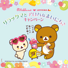 リラックマとロッテリアとコラボした、大人も子供も楽しめる「リラックマとアロハなまいにち♪キャンペーン」が始まります!