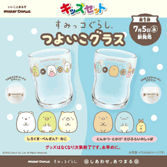さらに!ミスタードーナツのお子様に人気のキッズセットにすみっコぐらしのキャラクターをデザインした「つよいこグラス」も登場です♪