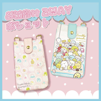すみっコぐらしの、おでかけにぴったりな2WAYタイプのポシェットとリールパスポーチが登場です!