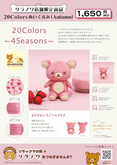 リラックマ20周年をお祝いして、一年通して20色のぬいぐるみを発売!