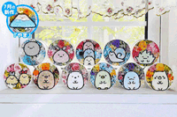 キャラクターがお花のすみっこにいるような構図が楽しい、コロンとかわいいアレンジメントです♪