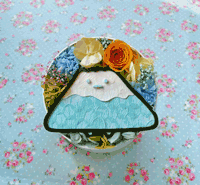 キャラクター部分は、貼り絵のようにあじさいの花びらを1枚ずつ貼り合わせることで表現。