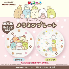 ミスタードーナツのお子様に人気のキッズセットにすみっコぐらしのキャラクターをデザインしたメラミンプレートが登場です♪