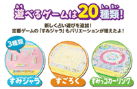 定番の色・絵柄をそろえる「すみジャラ」をはじめ、「神経衰弱」、「ビンゴ」などのゲームや、シートを使った「すごろく」、「すみっコカーリング」などゲームが盛りだくさん!!
