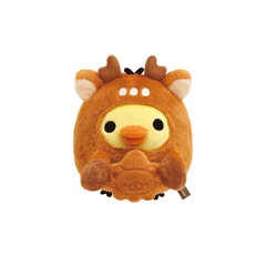 鹿のかわいい衣装を着た、キイロイトリのぬいぐるみが登場!