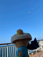 お芋をもったリラックマに麦わら帽子のチャイロイコグマと一緒に参加の2人はもう立派なリラ友ですね♪