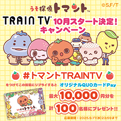 うそ探偵トマント公式Xアカウントをフォロー&指定の投稿に「#トマントTRAINTV」をつけてリプライすると、限定デザインのQUOカードPay最大10000円分が計100名様に当たります!