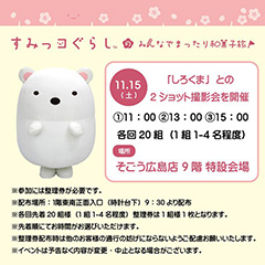 ※開店して整理券が残っている場合は、〈すみっコぐらしのみんなでまったり和菓子旅 in 広島〉会場にて配布いたします。
