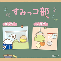 すみっコぐらし公式Xをフォロー、対象のポストをリポストすると「とかげ(柔道部)」「えびふらいのしっぽ(剣道部)」「たぴおか(サッカー部)」のぶらさげぬいぐるみ各1ヶが、抽選で3名様に当たるキャンペーン♪