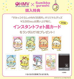 「すみっコぐらし×HMV35周年」オリジナルグッズ\3,000(税込)お買い上げ毎に、フォトカード(全8種)をランダムで1枚プレゼントいたします。