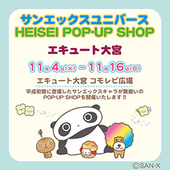 エキナカ商業施設「エキュート大宮 コモレビ広場」にて、「サンエックスユニバースHEISEI POP-UP SHOP」が期間限定で開催!