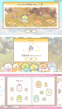 キャラクロスを解いて「たからもの」を発見しよう!ゲットしたキャラクターは「ギャラリー」にコレクションできるから、すみっコたちのかわいいイラストをいつでも楽しめます☆