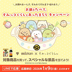 2025年10月31日より「すみっコぐらし」とミツカン鍋・ぽん酢のコラボレーション企画「お鍋のおいしさ、すみからすみまで味わおう」お鍋をたべて、すみっコぐらしとあったまろうキャンペーン