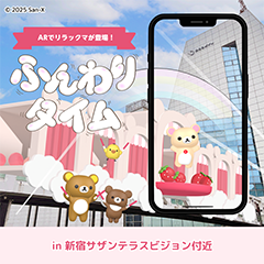 新宿サザンテラスビジョンにスマホをかざすと、いつもマイペースで癒しを届けてくれるリラックマたちが、今回はちょっぴり特別な演出であなたの前に登場します。