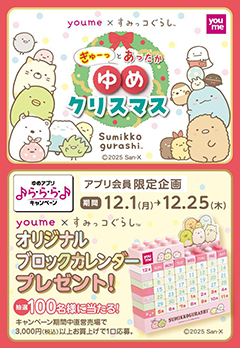 抽選で100名様にyoume×すみっコぐらしオリジナルブロックカレンダーがあたるキャンペーンを開催♪