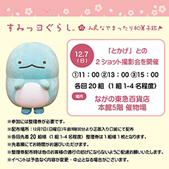 ※開店後に整理券が残っている場合は、ながの東急百貨店 本館5階催物場〈すみっコぐらしのみんなでまったり和菓子旅 in 長野〉会場にて配布いたします。