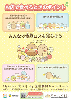 消費者庁が実施する、外食時の「おいしい食べきり」全国共同キャンペーンにすみっコぐらしが登場です☆