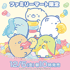 2025年12月5日(金)より、ファミリーマート一部店舗で、すみっコぐらし『グミグミパーティー』テーマの限定オリジナルグッズが登場!