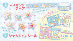 マスキングテープは使いやすい水色で、グミをもぐもぐするすみっコたちがかわいいデザインです。