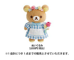 リラックマストア東京駅店と大阪梅田店では、チェックワンピースと花冠がかわいいリラックマの「ぬいぐるみ」を限定発売します♪