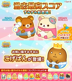 過去最高のスコア性能を持つ新すみすみの登場や、「お祝い風すみすみ」シリーズに、新たにこげぱんが仲間入り!