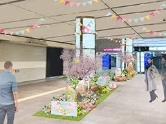 FARURU間通路では、桜や色とりどりのお花に囲まれた、親しみやすい春の空間を楽しめます。