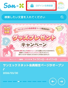 ※サンエックスネット右上の「ログイン/会員登録」ボタンからもアクセスできます。