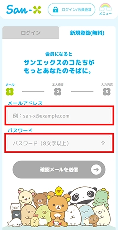 サンエックスネット会員ページ 登録方法のご案内(かんたん6ステップ)