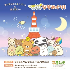 内容:サンエックスの仲間たちと楽しむ「ピクニック」をテーマに、「うそ探偵トマント」をはじめ、「リラックマ」、「すみっコぐらし」 など総勢8キャラクター以上のサンエックスユニバースのキャラクターたちと一緒に東京タワーやその周辺を散策しながら楽しめる体験型コンテンツを多数展開します。