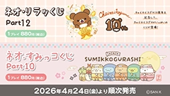 いよいよ明日、2026年4月24日(金)から「ネオ・リラッくじPart.12」「ネオ・すみっコくじPart.10」が順次発売開始♪